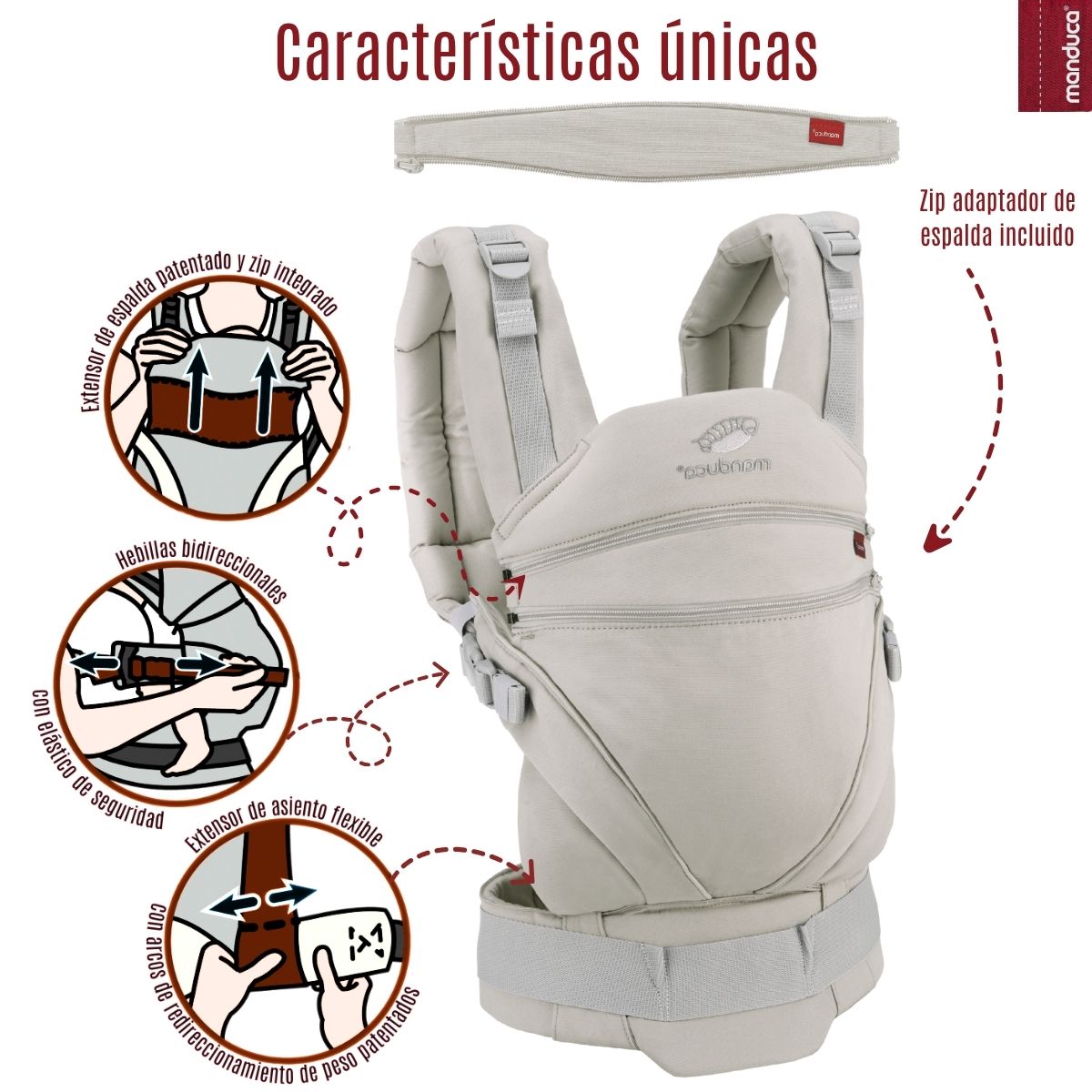 Incluye 1 asesoría gratuita de porteo por parte de la marca Manduca, garantía de 3 años (nacional e internacional) y acceso a grupo de apoyo para acompañarte en tu experiencia de porteo.