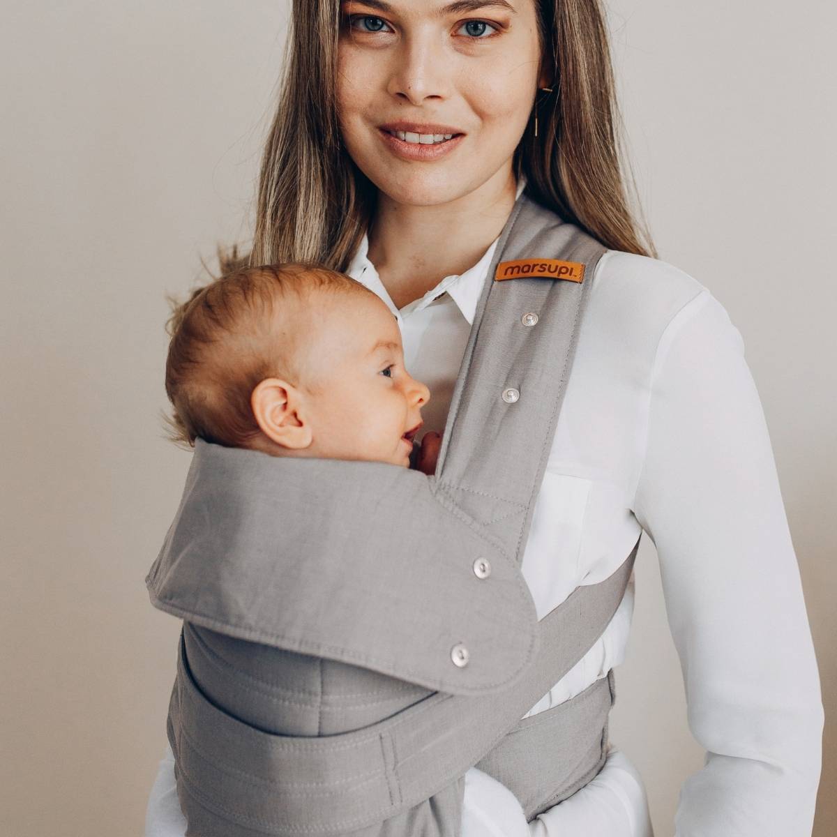 Marsupi Breeze Light Gray es minimalismo y frescura. Un portabebé cómodo, neutro y funcional, ideal para los primeros meses de tu bebé y perfecto para climas cálidos.