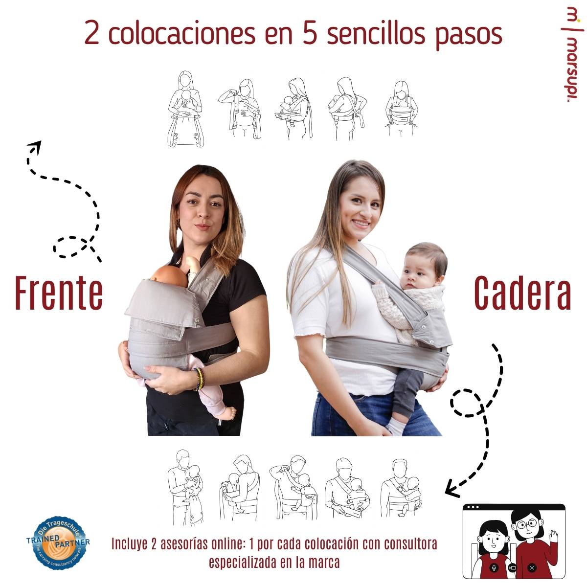 Apto para bebés desde los 3.5 kg hasta los 15 kg, ofrece un soporte ideal en los primeros meses. Su diseño sin broches ni nudos lo hace muy fácil de usar, y su cierre con velcro tipo militar asegura un ajuste firme sin complicaciones.