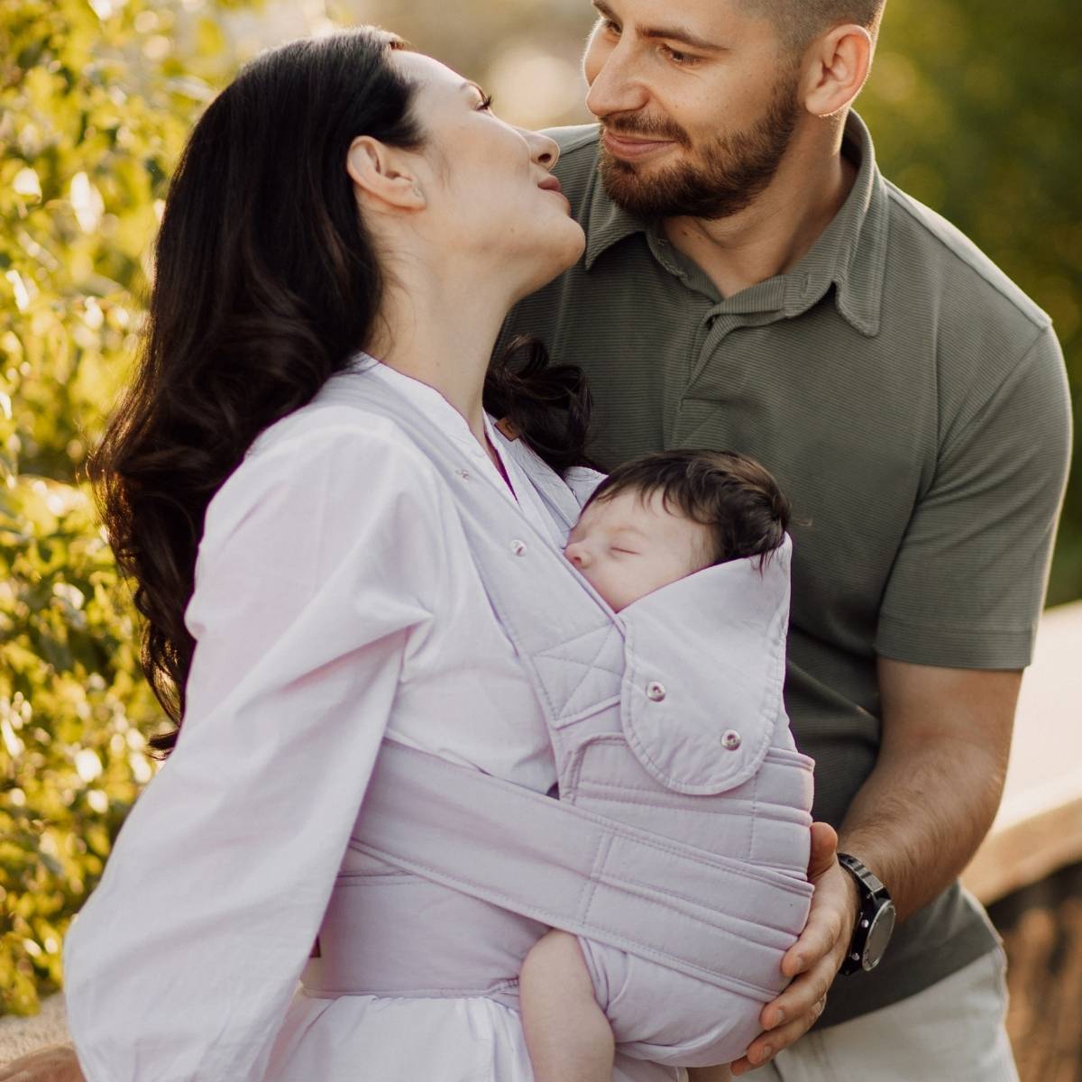 Marsupi Breeze Lilac es ternura ligera en forma de portabebé. Suavidad, frescura y comodidad para ti y tu bebé, incluso en los días más cálidos.